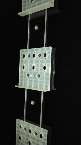 - WallYs mit den mitgelieferten M4 Schrauben und M4 Muttern auf der Leiste montieren. Die Muttern hinten in der Leiste in die entsprechenden Taschen einlegen und die WallYs von vorne mit der Schraube befestigen.